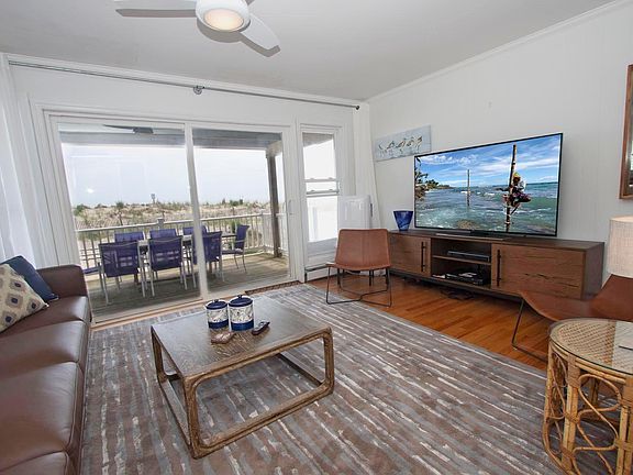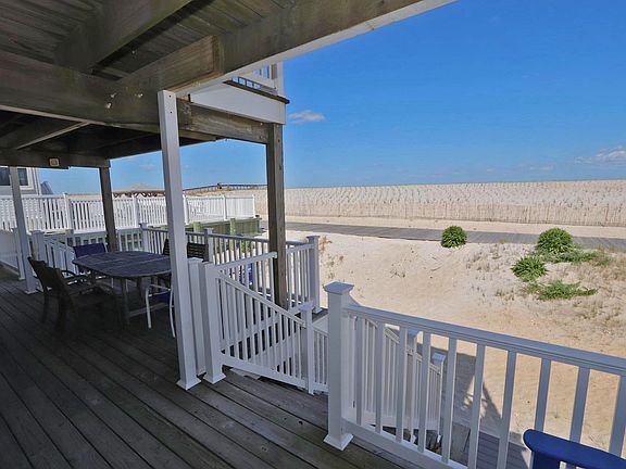 Home is a legal two family. Three bedrooms one bath full kitchen, living room/dinning room and front porch on the first floor. The second and third floors have five bedrooms three baths, full kitchen, living room/dinning room and an outside deck with beautiful ocean views. The home is easily used as a single family with the indoor staircase leading to the upstairs unit. The total weekly summer rentals approximately $9000. The house sits on an oversized oceanfront lot of 60x100.