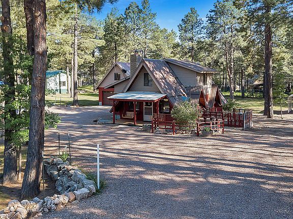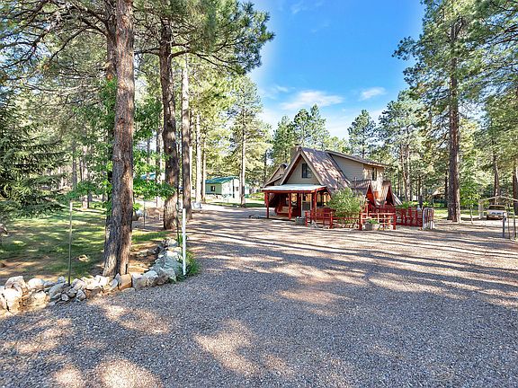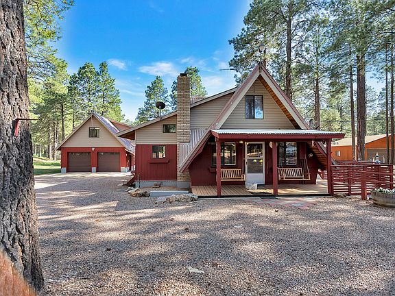 WOW! Check out this extremely well cared for adorable modified A-Frame cabin in the tall Ponderosa pines! Your search is over. This place has just what everyone asks for in a cabin. The owner built this w/ careful detail, utilizing space to the maximum. Home is situated on a 1 acre lot that also features a; LARGE Detached 4 CAR GARAGE that has front garage doors and one at the rear to backyard, a Second Level that offers several uses; Living Quarters, Game Room, Office...& 3/4 Bathroom. Storage Sheds/Workshops & amazing vegetation; Ponderosa Pines, Blue Spruces, Fruit trees, & all Kinds of Flowers / Bushes. Interior of the Home features; Great Room, Kitchen, Mud Room, Full Bathroom, Spacious Bedroom (lower level), 2 additional Bedrooms Upstairs, & Loft area (space to add bathroom)..See There is an Expansive 4 Car Tandem Garage, BONUS Room & Bathroom (upstairs). The upstairs area makes for private Guest Quarters or Game Room! IF you have been waiting for something one of a kind this is it & you MUST SEE for yourself so make appointment today! Propane Tanks are owned, Generator will convey, not auto start. Fruit Trees: Two Apple, Two Peach, one Plum and a Pear tree. **Forest Lakes is at the top of the Mogollon Rim which is about a 2 hour scenic drive from the valley. Come enjoy temps typically 30 degrees cooler than Phoenix in the Tall Ponderosa Pines. There are several trout stocked LAKES in the area. NO HOA! We do have a friendly community that holds events and has a community center. FLOA is the homeowners association, it is 100% Voluntary and operates by donation. Forest Lakes is the place to be so don't miss out on the opportunity to own your own escape from the heat or winter wonderland! *FURNISHED: Seller plans to leave most of the furniture to make move in ready, this is a gift from the Seller to Buyer.