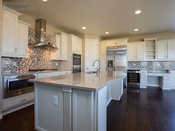 Beautiful white cabinets with crown molding give this home a wonderful flair - the gourmet kitchen is complete with GE stainless double oven, refrigerator, beverage refrigerator, 5-burner gas cooktop, & pot filler. What a great home for entertaining friends and family! Full landscaping, solar shingles and 2/10 builder warranty! Bucking Horse is an amenity filled neighborhood with artisan shops and pool/clubhouse. Don't miss out on this great value! DR Horton is the 2105 Builder of the Year!