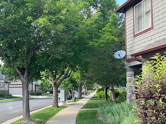 9' ceiling 2-story townhouse located at a quiet street, by the greenbelt and bike/walking trail. It comes with all kitchen appliances, pantry, washer & dryer, A/C, gas fireplace, and 2-car garage. Tile and wood floor on main floor for easy living. Main floor has living, dining, kitchen and 1/2 bath. Upstairs has Master suite , 2 other bedrooms, a full bath in the hall, and laundry with washer and dryer. Spacious master has 5-piece bath, including 2 closets, separate shower and soaking tub. Finished basement suite has 3/4 bath, large closet, cabinet/counter with bar fridge and microwave. Easy walk to Timberline Church, Kingsoopers , bank, restaurants, daycare,