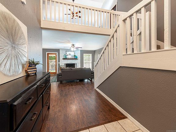 This hard to find Broken Arrow floorplan features an open kitchen, spacious downstairs master bedroom, master en suite bath w/ walk in closets, 2 living areas (1 down w/ fireplace + loft upstairs between bedrooms), updated flooring, indoor laundry, covered patio, updated windows throughout, fully fenced yard, sidewalk neighborhood, & convenient location. Call to see it today!