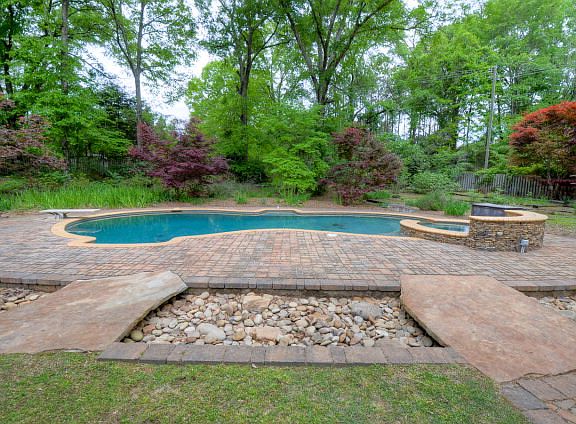 3 bedrooms on the main level, 4th bedroom/3rd bath/2 bonus rooms upstairs! Endless possibilities with space. 9' ceilings on main. Wide doorways. Zero entry shower. Acre wooded lot fenced. Salt water pool . Sunroom opens to pool - perfect entertainment/relaxation space! Formal living room could be used as an office. Large great room with vaulted ceiling, gas log fireplace. Large laundry. New carpet