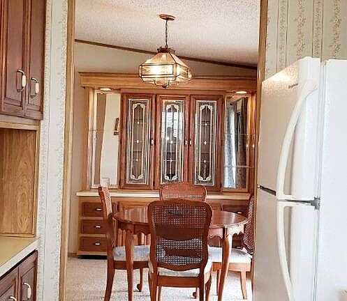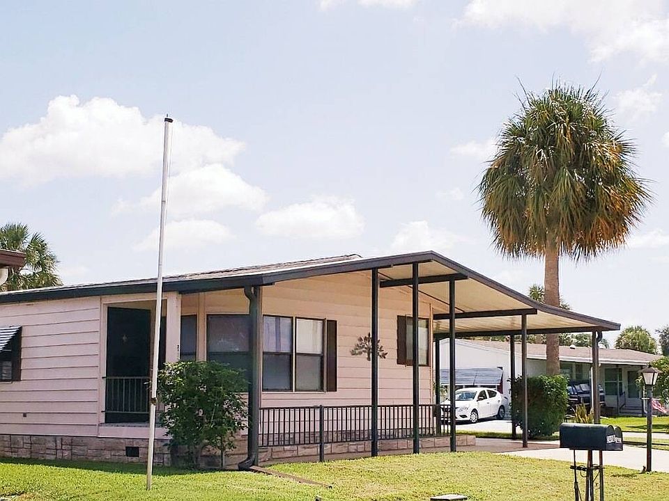 If you enjoy porches for retirement relaxation, then we have the home for you in this 2 bedroom, 2 bath manufactured home with 1,320 square feet of living, with three porches all on a large desirable corner lot. Sit on the covered, lighted side porch while drinking coffee or your favorite adult beverage, or on the front covered porch or secluded back porch. Many great features include open concept living/dining area, cathedral ceilings, built in hutch, plenty of cabinetry, carpet and linoleum flooring, inside washer and dryer with many cabinets, walk-in closets, and some furniture and window treatments. Additional features include A/C new in 2017 with warranty, roof new in 2018 with warranty, all new plumbing under the house in 2020, hot and cold water faucets on the outside, large shed for storage and super hurricane tie downs. This is a must-see house perfect for those looking to downsize in their retirement. Located in Quail Run Estates, this community includes a pool just around the corner from this home, a clubhouse with lots of fun planned events, including bingo, bunco, horseshoes, game night, restaurant night out with the residents, potlucks, a monthly coffee and donut time, and so much more. Park approval is required. Fees apply. Quail Run Estates is pet- friendly with weight restrictions and no aggressive breeds.