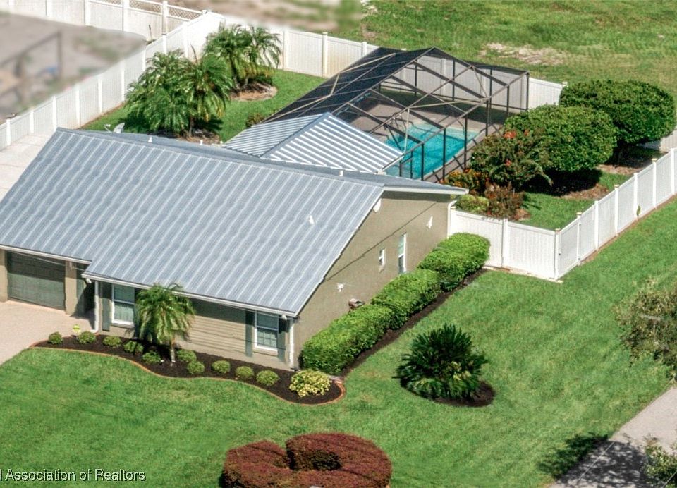 SHOWINGS & BACK UP OFFERS ENCOURAGED. Beautiful, furnished, 3 bed, 2 bath, caged-in salt-pool home! WHOLE HOUSE GENERATOR! Featuring a bright & open, split floor plan with a spacious living room, lots of recessed lighting and all tile floors throughout. Beautifully redone granite kitchen with stainless steel appliances, modern range hood, tile backsplash, under-cabinet lighting, slide-outs, corner lazy Susan cabinet and breakfast bar. Spacious master bedroom with walk-in closet and ensuite featuring updated vanity and shower with tub. Wonderful guest bathroom has been fully remodeled with floor-to-ceiling tile, walk-in tile shower with glass door and modern vanity. With 2 other generously sized bedrooms, you'll have space for family, guests or a hobby room. A favorite hang-out spot, in addition to the pool, will surely be the glassed-in, air conditioned, Florida Room, a great space to entertain while you grill on one of the two outside patios. Roomy garage with washer and dryer included, wall mounted cabinets and access to the attached 2nd garage, an addition in 2017 boasts about 46' deep, which the Seller used as a sportscar garage so it's an ideal space for a workshop. Set on a neatly manicured corner lot, surrounded by a white vinyl fence with an extra wide driveway. Enjoy the peace of mind with a whole house generator, 2024 metal roof, CITY WATER & SEWER, windows have been replaced, extra wide driveway, and a great location close to the hospital and shopping. This wonderful home is calling for it's new owner to enjoy!