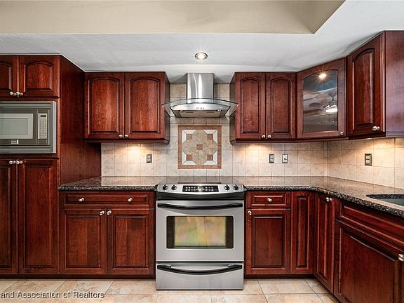 Caged-in salt-poolModern vanityTwo outside patiosRedone granite kitchenRoomy garageBreakfast barWhite vinyl fence