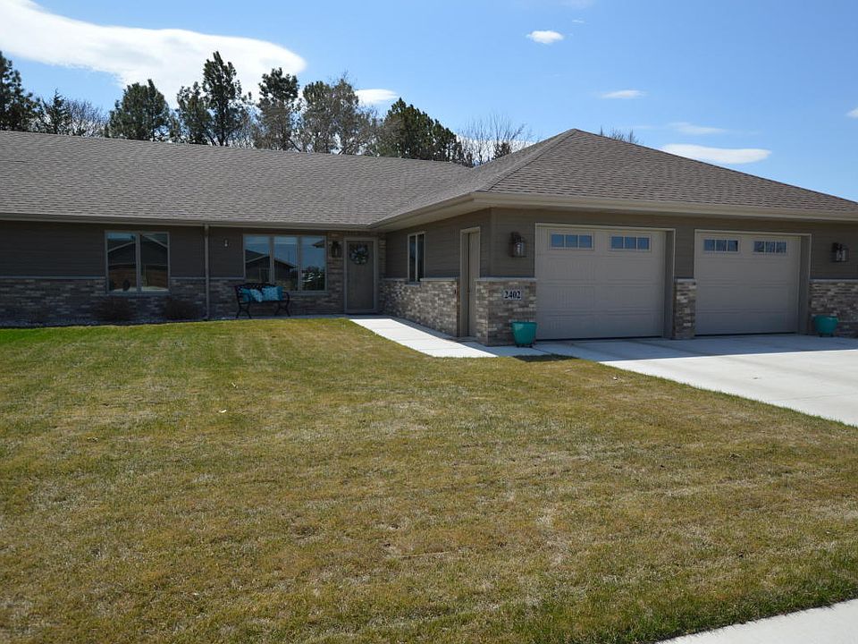 FASHIONABLE TWIN HOME! Tastefully finished this zero entry twin home sports an inviting floor plan with large great room featuring a stunning fireplace with granite surround. Numerous windows and a walk out to a large patio with privacy fence. Large master bedroom suite with sitting area and walk in closet complete with convenient laundry area. Plenty of storage with an oversized 2 stall heated garage. Additional storage area off patio. Geo Thermal Heat!