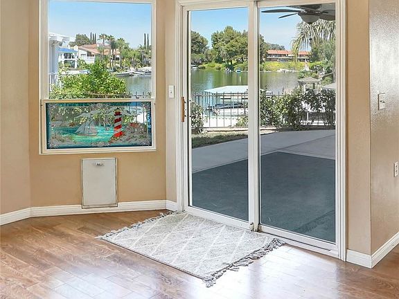Lake front single story home offers a large living and bonus room, 3 bedrooms, 2 bathrooms. Covered patio, fenced rear lawn, covered waterside deck, boat dock and hydrolift. 2 car direct access garage and side yard trailer parking. Welcome to the Private gate guarded community of Canyon Lake, enjoy resort living right in your back yard, recreation lake with over 15 miles of shoreline offers boating, fishing and water skiing, lodge with pool, restaurant and bar. Multiple parks and beaches. Tennis and Pickleball, Equestrian Center, Baseball fields, Basket Ball, 18 hole golf course with club house and driving range, Private RV camp ground and so much more.