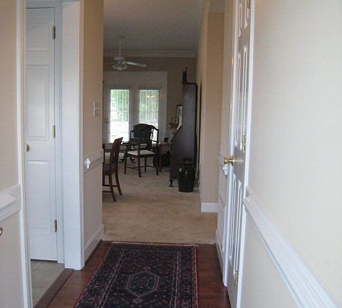 Extremely well maintained townhouse with fresh paint, new carpet & vinyl, master bath has huge shower w/built-in seat, heat pump & ductwork less than 2 years old, nice covered deck, nice mouldings & custom built-in storage cabinets in dining area. Dues $285/qt End unit...must see!!