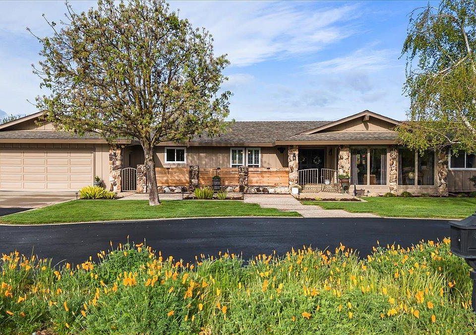 Welcome to this stunning mid-century ranchette on the open market for the very first time, presenting a rare opportunity to make it your own. As you approach the circular driveway, the charming red barn greets you, setting the tone for this inviting property. The newly remodeled country kitchen shows beautiful painted cabinetry, quartz countertops, farm sink, breakfast bar, and stainless-steel appliances. The expansive covered back patio, which overlooks the pool, is an ideal shaded area for enjoying your morning coffee or hosting backyard events, with shared access from the primary suite. Custom architectural details like elegant antique lighting, custom cabinetry, stonework, gated courtyard, and beautiful shutters all add to the nostalgic appeal of this home. The timeless barn serves as an ideal workshop, offering ample space for a home-based business or can be redesigned for large gatherings. Situated on 1.17-acre parcel surrounded by picturesque almond trees, this property shows a NEW septic system, 50-amp RV plug and provides plenty of room for a boat, work vehicles, farm animals, and vegetable or flower garden you have always wanted. Carefully maintained to preserve its vintage charm and character, this home is a reminder of times past filled with cherished family memories.