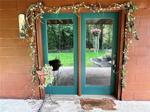 Escape to your private paradise with this 3-bedroom, 3-bathroom home nestled on 7 acres of wooded seclusion. Meticulously landscaped grounds & surrounding woods offer natural beauty in every direction. Inside, discover a spacious family room for gatherings, tiled bath, mud room & laundry. On the main floor, you'll find a great room w/beamed ceilings, french doors leading to a large front deck, remodeled kitchen, granite counters & stainless appliances. From your new kitchen, step onto a 2-tiered composite back deck overlooking the lush backyard & pool. This level also features a huge, updated master bedroom w/ensuite bath addition built in 2000. The 2-car attached garage & private lane offer convenience & security. Other amenities include 2 sheds for storage, cement pad w/full RV/mobile home hook-ups, picnic area, hunting stand & fenced pet area. This property is a true hidden gem, (unseen from the road) & no other homes in sight. It has been inspected & priced to sell quickly.