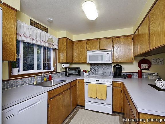 Beautiful mantle, tile surround on gas fireplace, vinyl windows, 1 year old dishwasher, heat pump, remodeled master bath and half bath. Enjoy the serene setting on the back deck, dead end privacy. Garage has an enclosed shop and lots of storage space and cabinets.Edgefield, Amazon, Subaru, I84 are within minutes!