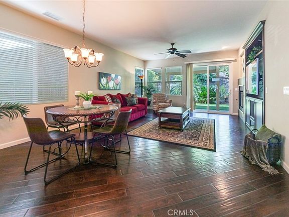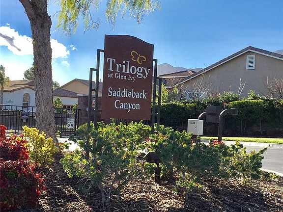 Enjoy the renowned Trilogy @ Glen Ivy Active 55+ life-style community, while living in this nicely upgraded and popular Sage Model. Rich dark wood flooring welcomes you into the Open Floor Plan of this 2 Bedroom, 2 Bath, 2-Car Garage Charmer. This home's distinctive and well-appointed Kitchen is always well-lighted by a delightful Skylight, and the Kitchen is open to a quaint adjoining Dining Area and an ample Great Room. The latter has an attractive built-in Entertainment Center that can accommodate up to a 72" TV and all your favorite stereo components as well. The front-facing Guest Bedroom has an adjoining private mirrored closet leading into the home's Guest Bathroom that has a Shower/Tub combo. The spacious Primary Bedroom has an adjoining Step-In Shower Bathroom, a Walk-in Closet, a well-lighted double-sink, Mirrored-Vanity, plus a private WC. To encourage outdoor living and enjoyment, the upgraded Back Yard has a 2-Tiered maintenance-free "alumawood-type" Patio Cover and a top-quality artificial turf area to further reduce maintenance and watering costs. Trilogy's front yards are all nicely landscaped and maintained by the HOA, keeping the entire Trilogy community always looking clean and beautiful. Trilogy's numerous amenities include: Indoor/Outdoor pools, Tennis/Pickle/Bocce Ball Counts, Card/Billiards/Craft Rooms, an Indoor Air-Conditioned Walking Track, plus a well-equipped Gym - All covered via the HOA Fee. The challenging 18-Hole Glen Ivy Golf Course, meanders throughout Trilogy's housing areas, along with ever-green Avocado Tree Groves. Finally, a delightful Outdoor Amphitheater, nestled into the Cleveland National Forest Mountains, is available for Summer Concerts and other special events. Trilogy promotes making new friends and meeting your neighbors via numerous affinity club gatherings and special events. You are welcome to come join us!