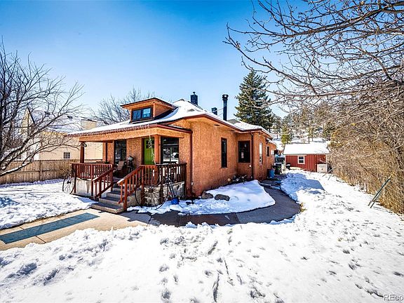 This charming historic home is located in the quiet town of Elbert on two city lots. The home offers low a maintenance stucco exterior and a new roof in 2023. The open floor plan features a family room with cozy wood burning fireplace, large dining room and spacious kitchen. The main floor offers two bedrooms and an office/den and the upper level features a spacious loft and third bedroom. This historic home was originally heated with a coal stove in the basement and the grate on the main floor is still present. The lot is fully fenced with several outbuildings and a 10x10 insulated building that would make great office or studio. This darling home has so much character and charm, it is just waiting for you to make it your own! Seller is in process of making some minor repairs but this property is sold "as is, where is" condition. The town of Elbert is a beautiful, serene place to call home and the zoning allows for a few chickens and ducks. This quaint small town is conveniently located within 30 minutes to Peyton or Falcon, 45 minutes to Castle rock and 15 minutes to Elizabeth. Elbert features a newer "State of the Art" K-12 school. Dont miss this opportunity, this property has so much to offer!