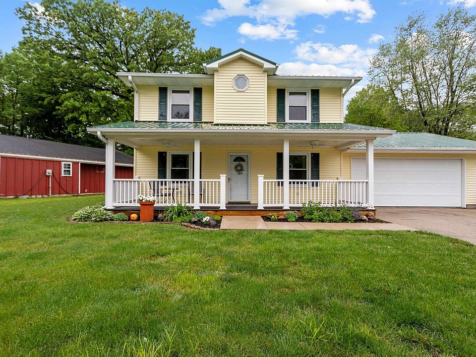 Wonderful curb appeal and a peaceful setting comes to mind when describing this immaculate home located on Kokomo's west side. Outside, there is an inviting front porch with composite decking, and a backyard that will pleasantly surprise you! Upon stepping inside visitors will notice a grounded cohesive feel as the flooring compliments the attractive paint throughout. The main floor provides a living room, dining room, kitchen, and a convenient laundry/bath. A patio door off the kitchen leads to the cutest patio and deck. Upstairs you will find a full bath and four bedrooms. The primary bedroom has a large walk in closet. The two car heated/attached garage and large shed are a bonus any buyer is sure to appreciate. Metal roof, vinyl siding, and newer windows make maintenance a breeze. Professional photos coming soon.