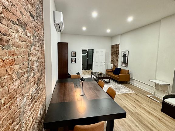 This is a very dynamic furnished live/work space located in the heart of Bronx Little Italy, NYC's best undiscovered neighborhood. We are located steps to world famous Arthur Avenue, the New York Botanical Gardens, Fordham University and the Bronx Zoo. It works very well for someone who owns a creative business but wants to save rent and have one space to both live and work. There is a murphy bed in the space that is attached in the pictures. The space formerly operated as an art gallery and was recently updated with hi-hat lighting, a split system for AC and (additional) heat and new vinyl wood flooring. The ceiling height is about 13 feet which makes the space dramatic and fungible. The monthly rent is $2,250. Landlord pays heat and hot water. We can do a 12 month lease or longer. Generally we are flexible and amenable with the application process.