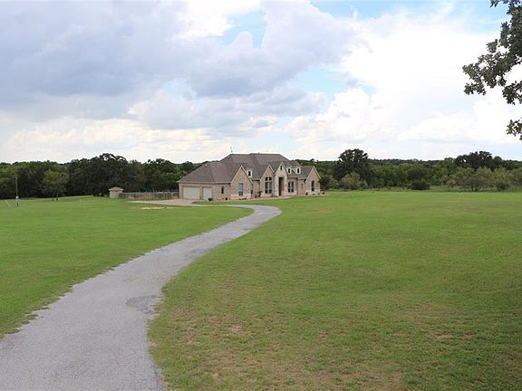 NEW ROOF AND GUTTERS! Beautiful home only 30 minutes from Weatherford on 5 acres ready for you to move in! The house boasts of 10 foot ceilings throughout and open concept. The airy kitchen has stainless steel appliances, brand new microwave that has never been used, ample storage and a custom pantry. Dining room has gorgeous hand scraped wood floors, centrally located living room with cozy fireplace and large windows to bring the outdoors in! A bedroom and bath are alone on the south side of the house and could serve as the perfect guest hideaway! Master bedroom is large with French doors leading out to the perfect covered porch to enjoy your morning coffee. $5,000 buyers allowance for updates.