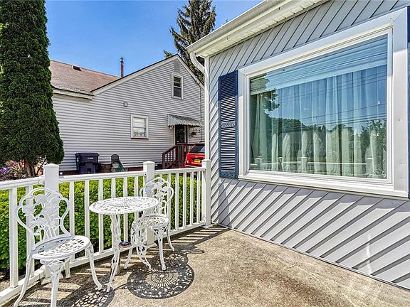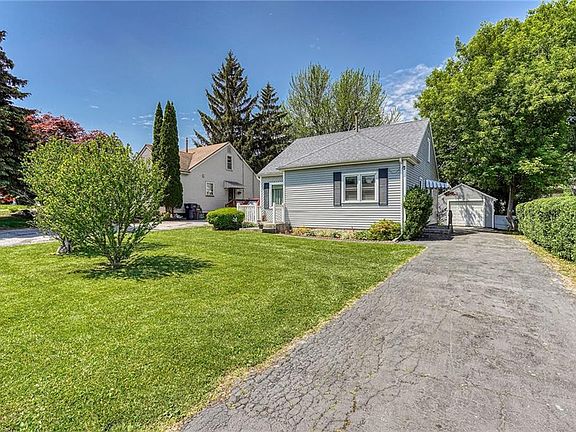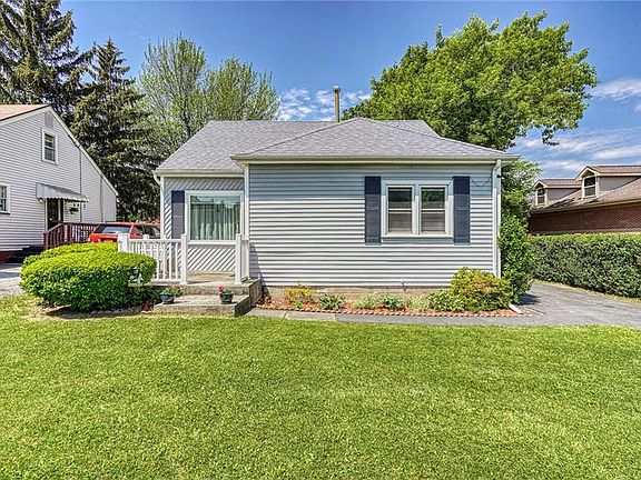 This home has been lovingly cared for by one owner for 25 years ~ Move in ready from top to bottom in the East Irondequoit School District ~ The light & bright (eat-in) kitchen will greet you, ready for your decor ~ Spacious living room features a great oversized picture window & foyer that leads to the front concrete patio w/ decorative railing ~ Fresh paint throughout the 1st floor ~ Original hardwood floors ~ Lots of storage space ~ Timeless bathroom has ceramic tile floor & wall surround ~ 3 great sized bedrooms ~ Large, beautifully landscaped yard ~ Low maintenance vinyl siding ~ Freshly painted, dry basement w/ storage or rec room & glass block windows ~ Water heater approx 6 yrs old ~ Tear off roof w/new plywood, siding, windows, & garage door all approx 12 yrs old ~ Conveniently located near expressways & shopping! ~ Welcome Home