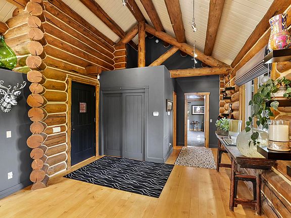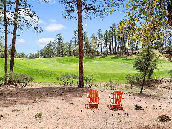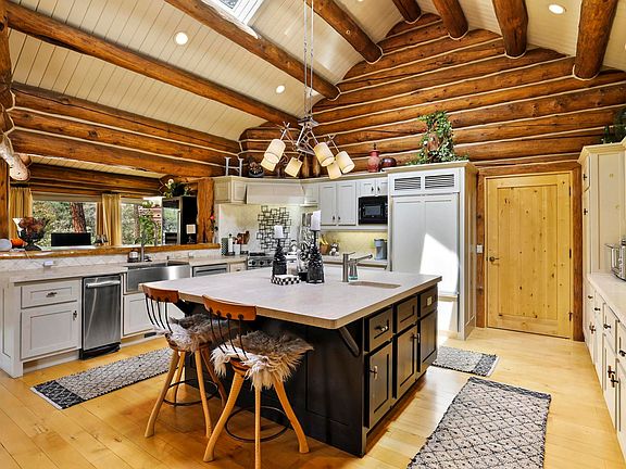 Spectacular Custom Log Home on Exclusive Golf Course! Welcome to a one-of-a-kind, fully custom-built log home nestled at the end of a private cul-de-sac on the 11th fairway of an exclusive golf course. Surrounded by mature ponderosa Pines, this home offers both serene privacy and stunning views. Inside, you'll find soaring vaulted open-timber ceilings and expansive windows that flood the home with natural light. The beautiful wood floors and incredible craftsmanship are evident throughout. The well-appointed kitchen features a massive center island—perfect for entertaining—and is equipped with high-end finishes and appliances. The luxury master suite offers a peaceful retreat, while the split floor plan provides privacy for guests or family. Additional spaces include a dedicated office, storage, guest suites, and a spacious entertainment room, ideal for gatherings or relaxing evenings. Step outside to a huge 'Trex' deck overlooking the lush fairway—perfect for enjoying quiet mornings or hosting guests in style. This turn-key home includes incredible upgrades rarely seen in this price range. Furnishings may convey depending on the sale price.