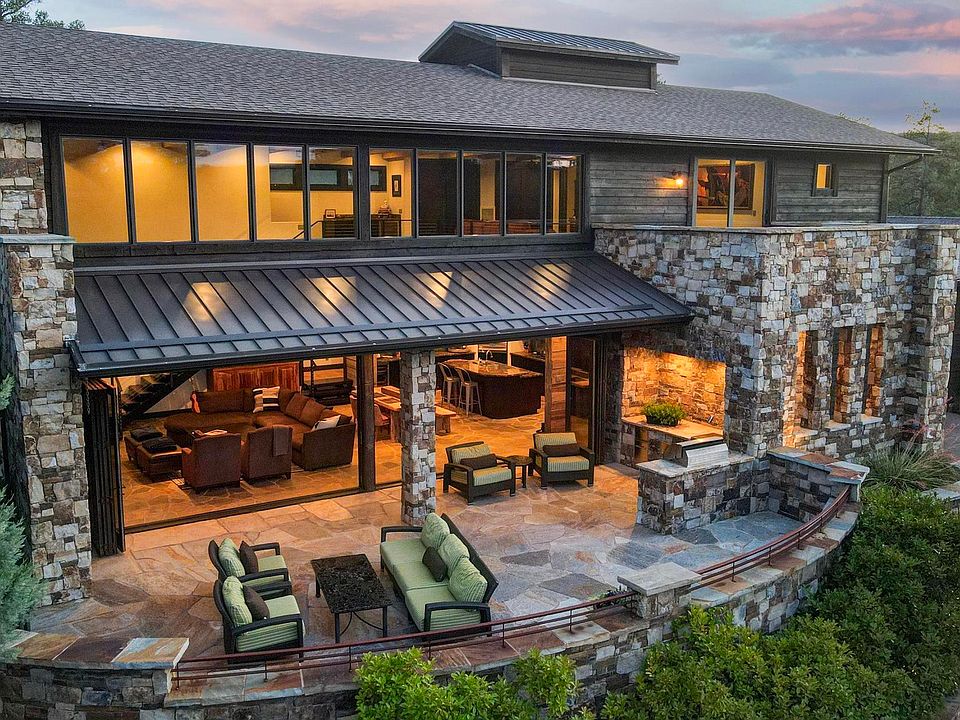 This custom-built home with amazing mountain views is positioned perfectly on a hill offering privacy and a peaceful ambiance. The contemporary mountain home was completed in 2012 with many luxurious upgrades including granite flagstone flooring from Telluride, CO inside and out. Reclaimed cedar beams throughout are from the first telegraph lines that traversed the Rocky Mountains. The heart of the home offers an open concept with gourmet kitchen, polished schist granite, breakfast bar, Wolf stainless steel gas stove top, Wolf stainless steel appliances, Sub-Zero refrigerator, wine refrigerator, beverage refrigerator, and custom cabinetry. Eat-in dining is adjacent to the large family room with a wall of stone quarried from Colorado featuring a contemporary fireplace, floor to ceiling windows of wall-to-wall folding patio doors that fold open to a large outdoor patio with built in BBQ.