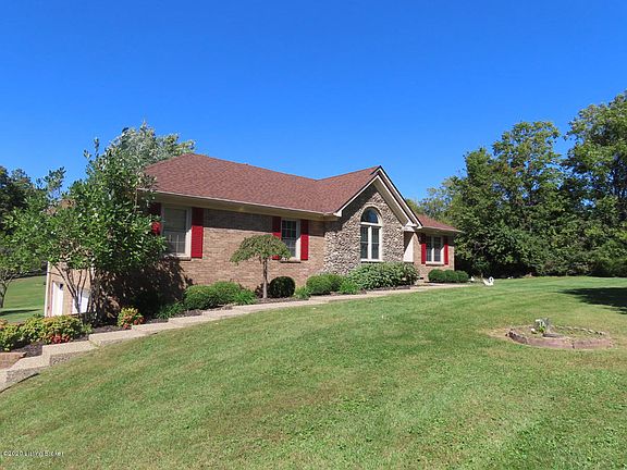 Well-cared for all brick ranch home located on a scenic 1.26 acre lot. 3 bedrooms and 2 recently updated full baths. The home is full of natural light and features a vaulted ceiling, giving it an open airy feeling. Out back is a HUGE covered balcony that overlooks the expansive, tranquil backyard. Incredible outdoor living & entertaining space, or just a peaceful retreat. Downstairs is the partially finished walkout basement that features a fireplace for those cozy nights. The home is quietly nestled in the comfortable confines of Borowick Farms, yet just minutes to parks, award-winning, premier public schools, shopping & dining, Oldham Co. Country Club, and the quaint, Historic Downtown LaGrange. THIS IS THE HOME YOU'VE BEEN LOOKING FOR!
