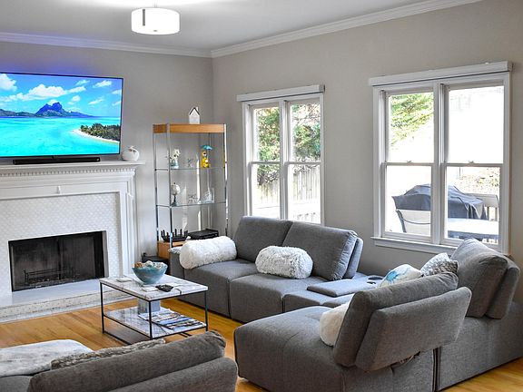 FULLY FURNISHED! Available to you are 4 bedrooms including a Master Bedroom Suite with an office equipped with a monitor, desk speakers, and a 65" 4K TV. Relax on the new contemporary oversized sectional in the living room with motorized window blinds and a 65" 4K TV. Outdoor seating and BBQ are on the backyard patio. During the summer months, guests can also enjoy a community pool located within walking distance. The space: Indulge in modern simplicity and bask in natural light in the living room. Hardwood floors add warmth and elegance to each room, and 2 of the 4 bedrooms are equipped with TVs for ultimate relaxation. Savor the perfect evening with a BBQ on the shaded backyard patio. Landlord responsible for yard maintenance, electricity, internet, and sanitation. Owner pays for electricity, Internet, sanitation. Renter pays for water and gas. First month's rent due at signing.