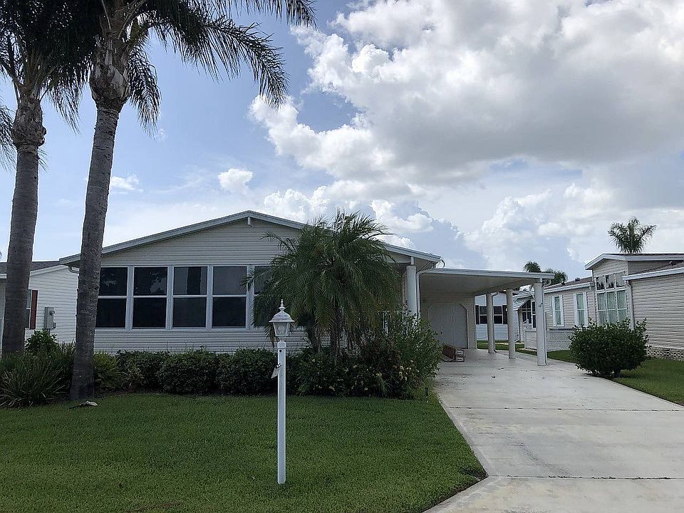 3 BR 2 BA 1344 SQ FT, fully furnished. Open, Split floor plan. Windowed lanai, laminate floors, immaculately kept and maintained. Covered carport plus golf cart driveway and golf cart garage. Large eat in kitchen with loads of cabinets. Spacious Master bedroom large enough for a king-sized bed. Double sink vanity in master bath, plenty of walk-in closet space. This home has a separate laundry room. Great front porch area. New roof.