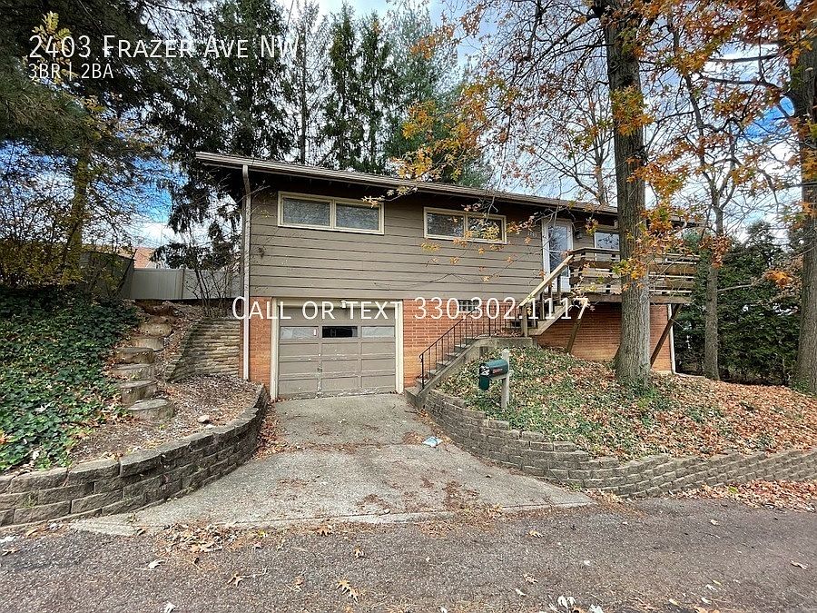 Welcome to 2403 Frazer NW in Canton. This beautiful three bedroom two bathroom raised ranch won't last. This home sits on a wooded lot with a private back yard. Within walking distance of local restaurants, shopping and walking paths. First level includes a large family room with access to the attached one car garage, utility room with a half bathroom and washer/dryer hookups. The second level has an open floor plan with a large living room, modern lighting and ceiling fan. Kitchen has plenty of cupboard space that includes a refrigerator. Three nice sized bedrooms with carpet flooring. Full bathroom includes tub and tiled shower. Outside there is a deck just off the living room and a private back yard that includes a patio. $40 NON-REFUNDABLE application fee. $100 lease processing fee due upon approval. Deposit is the same as one month's rent. ESA animals do not count as pets and are always welcome. Minimum 12 month lease. We do a background check for evictions and criminal history. Income must be at LEAST 3 times the rent amount in take home pay. Applicant must be able to show proof of income. Offered by The Rick and Shawna Team and Icon Property Management Both are Equal Opportunity Housing Providers Visit The Rick and Shawna Team on Facebook