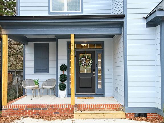Welcome to 2403 Hart Street in Durham, NC 27703. A beautifully maintained 3-bedroom, 2.5-bath home offering over 1,800 sq ft of modern living space just minutes from Downtown Durham and RTP. This stunning property features an open-concept layout with engineered hardwood floors, a cozy gas-log fireplace, and a gourmet kitchen complete with stainless steel appliances, marble countertops, and a spacious island perfect for entertaining. The oversized primary suite includes a walk-in closet and a private bath with dual vanities and a glass-enclosed shower, while two additional bedrooms provide comfort and flexibility for family or guests. Enjoy outdoor living on the large screened-in deck overlooking the private backyard, with ample off-street parking and charming curb appeal. Conveniently located near Duke University, local shops, restaurants, and major highways, this move-in-ready home perfectly blends style, comfort, and convenience, making it an exceptional find in the heart of Durham.