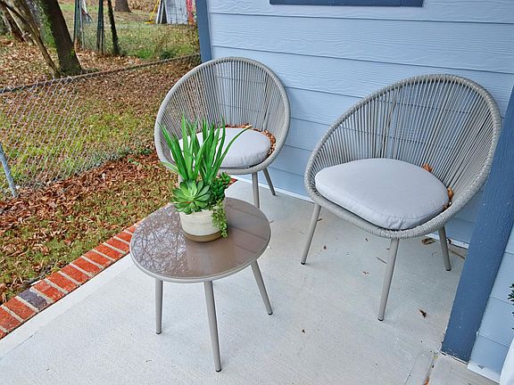 Cozy gas-log fireplaceGourmet kitchenEngineered hardwood floorsCharming curb appealGlass-enclosed showerPrivate backyardMarble countertops