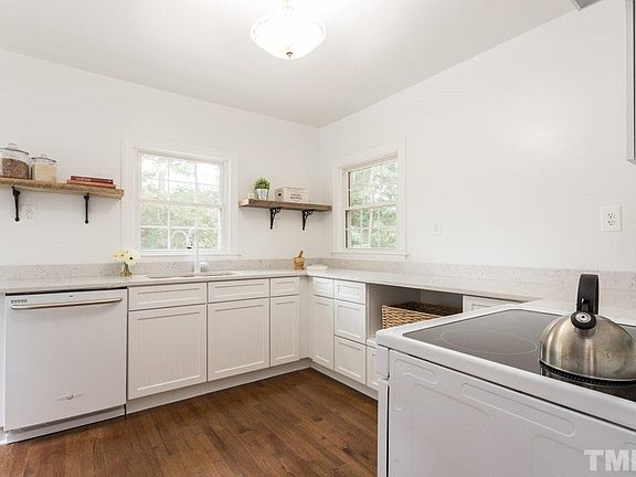 Beautifully restored 1940's brick home and HUGE 45x30 garage / shop on a .66 acre corner homesite. Fenced in and private back yard. Mature trees, No HOA and just 5 minutes from downtown, 1 mile from Farmers Market and NC State Centennial Campus. Walk to parks & shops. Home was taken down to the studs. New electrical, plumbing, HVAC, septic, spray foam insulation. New and updated kitchen. Hardwood throughout. Built in bookcase & organization systems, Wood burning fireplace. An incredibly unique home.