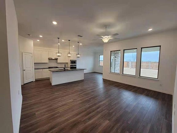 Open floor planOversized backyardManicured yardStainless steel appliancesQuartz countertopDouble sinksLuxury vinyl plank