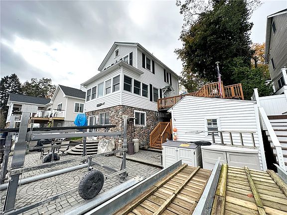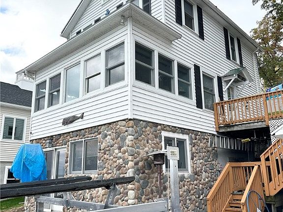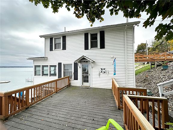 Don't miss your chance to get into this 3 story home on Cayuga Lake! Originally 2 stories this home was raised up to finish the basement into an extra floor of living space! With over 50' of lake frontage this home is your perfect getaway to the finger lakes! 5 parking spots at the top of the lot. A large porch with breathtaking views off the second floor and a ramp with direct access to get into the top floor. On the lake level you have a paver patio leading right up to the sea wall. There is an overall 90' removable dock with a 20' platform at the end. West side views mean gorgeous lake views underneath the sunrise every morning. Enjoy all of the benefits of living on the lake AND right on the Cayuga Lake wine and beer trail. All furniture is negotiable. 4000lb boat hoist can be purchased separately.