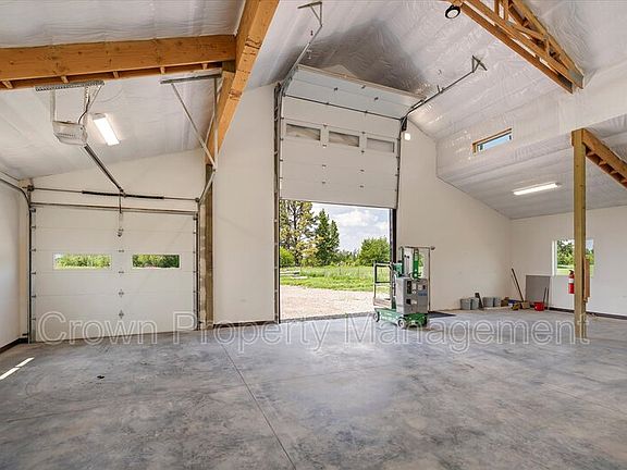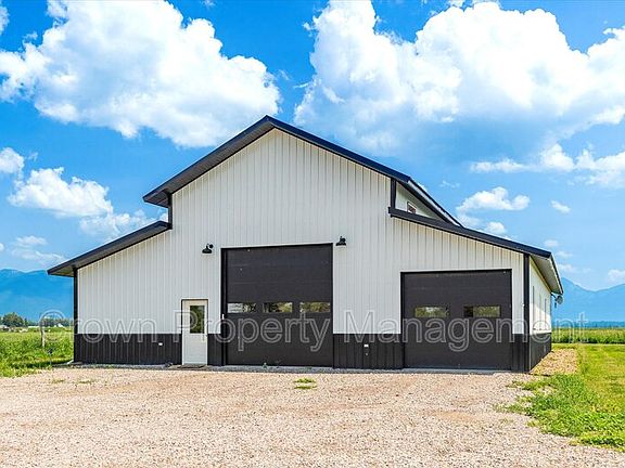 Welcome to a stunning 3-bedroom, 2-bath barndominium nestled in the picturesque lower valley. This beautiful property is painted in elegant white, with contrasting black trim that adds a touch of modern sophistication. It sits on a small, quaint farm, enveloped by expansive fields, winding rivers, and majestic mountains, a panorama that guarantees breathtaking views at any time of the year. As you step into the house, you'll be immediately captivated by the soaring vaulted ceilings, a hallmark of the spacious and airy open-concept design. The living area and the master bedroom are adorned with high-quality vinyl plank flooring that complements the rustic charm of the wood finishes spread throughout the home. The generous master bedroom serves as a peaceful retreat, complete with a walk-in closet and an en-suite bathroom. The bathroom features a double vanity for convenience, a large soaking tub set against a window for soaking up the views, and a beautifully tiled shower. The two secondary bedrooms are carpeted, providing a warm and cozy space for relaxation or work. The property also includes a large garage suitable for parking and storage. Step outside to a generous patio area, perfect for summer barbecues, evening fires in the fire pit, or simply taking in the tranquil farm surroundings. The well-maintained grassy yard is ideal for outdoor activities and adds to the overall charm of the property. This barndominium offers a unique blend of rural charm and modern comfort, providing an idyllic setting for a peaceful and picturesque lifestyle. With the incredible panoramic views of the mountains and the serene rural setting, this home offers an escape like no other. One year lease required. First month rent of $3100.00 plus security deposit of $3100.00 required at lease signing. Tenant is responsible for all utilities, and lawn care. Property owner provides snow removal for the driveway leading up to the house. Tenant is responsible for snow removal from sidewalks, patios, and around vehicles parked outside of the garage. Note: the surrounding farmland is actively farmed by the property owner, it will not be included as part of the rental premises, and tenant shall have no right to access. Likewise, while the property has water access to Church Slough off of the Flathead River, and the property owner keeps a dock on Church Slough that is not included in the rental. While this property description represents the home as accurately as possible, we recommend an in-person visit to fully appreciate its unique characteristics and stunning surroundings. Dock access can be included for an additional monthly fee, if desired. This property is professionally managed by Shannon McNamee of Crown Property Management PMP-RPM-LIC-53352. Equal Opportunity housing provider.