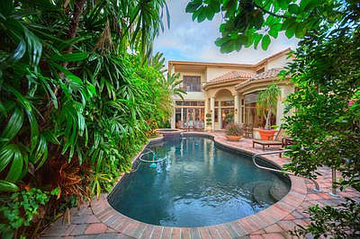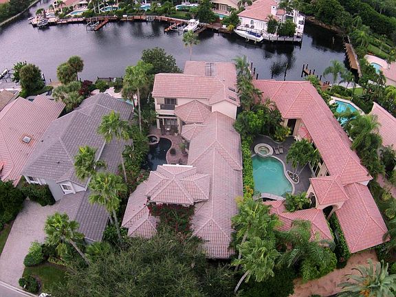 2-story exceptional 6 bedrooms and 6.5 baths romantic courtyard home offering 2 bedroom guesthouse and private dock with deep water access in the exclusive community of Frenchman's Creek in Palm Beach Gardens. Marble and custom carpeting, crown moldings, French-styled doors and windows and neutral decor throughout. Open luxurious kitchen with center island, stainless steel appliances and counter seating plus mirrored family room overlooking courtyard pool through numerous French doors and sunny breakfast nook. Enjoy custom carpeted den with built-in, luxurious guest rooms - some with private balconies and stunning downstairs master suite.