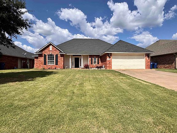 The listing REALTOR is also the seller of this home! Welcome to this charming 4-bedroom, 2-bath brick home nestled in a peaceful and family-friendly neighborhood where children can safely play and ride their bikes along quiet streets. This well-maintained residence boasts fresh updates including new paint in three bedrooms and stylish new flooring in three rooms, creating a fresh and inviting atmosphere throughout. Enjoy spacious bedrooms with walk in closets in each one, along with a large master suite boasting his and hers features, rest assured that you will always have room for you and your loved ones. The kitchen is set to impress with a brand-new built-in microwave and an upcoming installation of a beautiful farmhouse-style sink, perfect for both functionality and aesthetic appeal. Enjoy year-round comfort with a fully replaced HVAC system and water heater, both less than a year old, ensuring efficiency and peace of mind. Outside, the large flower beds add vibrant curb appeal, while the expansive backyard offers plenty of room for relaxation, gardening, and outdoor activities. Conveniently located less than five minutes from all your favorite local spots, this home offers the perfect blend of tranquility and accessibility. Don’t miss the opportunity to make this lovely house your new home! Please call Brittany Gourney with Preferred Real Estate for showings at 580-467-1026