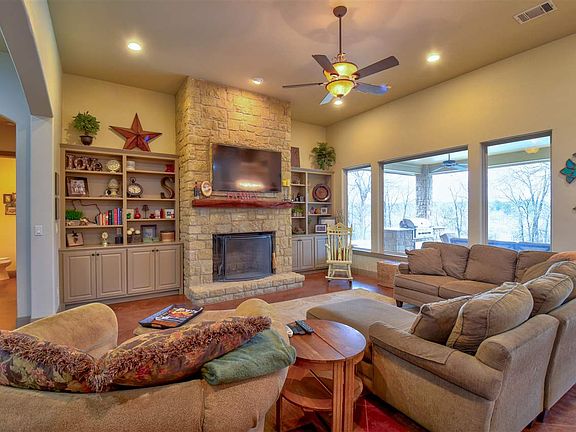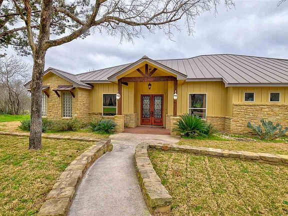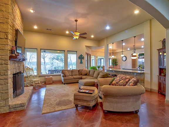 This custom 1 story home with saltwater pool and private covered patio and outdoor kitchen, invites comfort , and is perfect for entertaining. The home is nestled on 7 plus secluded acres, minutes from downtown Marble Falls. The living room features 12' ceilings, custom built in shelving and is anchored by a Texas limestone fireplace. The living rooms large windows gives a view to the gorgeous saltwater pool and sunrises.The chef's kitchen has a oversized center island, farmhouse sink, brushed copper fixtures, Thermador appliances, and granite counter tops. The extra large walk-in pantry is reflective of this exceptional kitchen. Enjoy the serenity of secluded acreage as you sit in the dining room adjacent to the kitchen. Both areas feature unique custom lighting. The spa-like bathroom, off the master suite, is an owner's dream. Double vanities, granite counters, and an oversized shower with multiple shower heads. The bathtub is separated with a glass block wall that allows for privacy and elegance. Exceptional storage lingers throughout the home with built-ins and closets. The oversized great room has built-in shelves and is large enough for pool table, plus exercise equipment, and his and her office. One garage bay is air-conditioned, so can be used for an office, exercise room, or other. This is a must see.