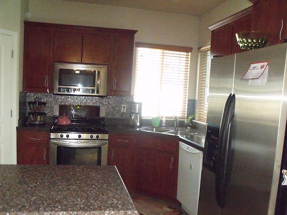 Stucco with 3 car garage..Open floor plan with vaulted ceilings. Breakfast bar. Granite countertops and pull out cabinets in kitchen. Pantry. Vinyl fencing with covered patio in back of home. Nice neighborhood. Honey the dog barks a lot, but is friendly. Please do not let her out in front.
