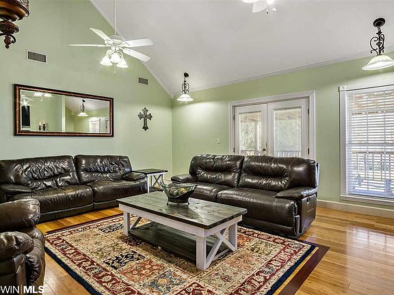 Just in time for Spring and Summer this STUNNING Creole style home is the ultimate in waterfront living!!! Impressive courtyard entry and wing wall stairs lead you to some of the best views on Dog River. Upon entering the spacious foyer you will see this home is inviting and bursting with southern charm. The living room has warm bamboo flooring with multiple arched openings and soaring ceilings. The second story balcony with ornate wood banister is open to the living area creating amazing architectural detail. Expansive windows flank the living area and allow the sunlight to fill the room while lending to your beautiful waterfront view. French doors take you to your massive 45x13 foot coverage balcony.. perfect place for morning coffee or unwinding at the end of a long day!! The massive kitchen is a chefs dream. Endless counter space, island, tons of cabinets, new oven and ice maker, stainless steel appliances, and a walk in pantry. The kitchen with its massive attached dining area is definitively set up to host large gatherings. Enjoy eating dinner in your dining area with waterfront views all around. The powder room is adjacent to the kitchen and is discreetly tucked away by custom wood barn doors. The master bedroom is well appointed and has its own wing of the house. It is complete with its five piece en suite. The master bath will have you feeling like you have just entered a spa and your own private dressing room. With his and her vanities, separate shower, and super soaking tub. The guest bedrooms are located on the second level and are very spacious. Now for the best part!! The home has ans additional 1000 square feet basement area with amazing game room, pool table to remain, mini kitchen, half bath, storage room, and attached workshop!! Basement area leads to your covered patio and your beautiful green lawn taking you to your waterfront paradise!! The heat pump is 2 years old, the one upstairs is a year old. Both hot water heater are new.