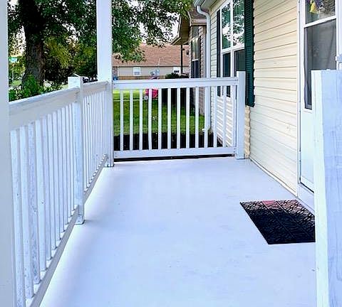 - ExteriorFeatures: Deck, Gutters & Downspouts, Porch/Covered