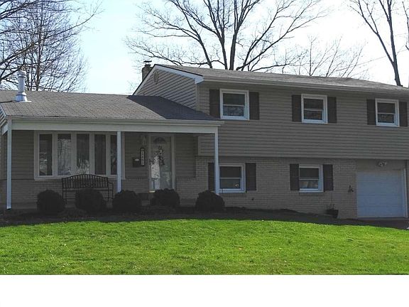 This spacious split level in popular Oak Lane Manor has had many recent updates over the past several years including refinished hardwoods, tile and granite hall bath, tile in master bath, new carpet in master bedroom and guest room, vinyl siding and windows, six panel interior doors, tile floor and backsplash in the eat-in kitchen, and basement waterproofing in the crawl space. Other features include a master bedroom with dressing area, walk-in closet and updated master bath, a formal dining room that can accommodate a table for 8 in addition to a wall cabinet, a generous sized family room, and laundry, as well as an oversized one-car garage and nice sized shed for extra storage. The utilities include a 200 amp electrical service, as well as a Carrier gas heater, Carrier A/C, and a gas water heater. For your outdoor enjoyment, there is a front covered porch, a rear patio, a fire pit area, and very nice sized yard.