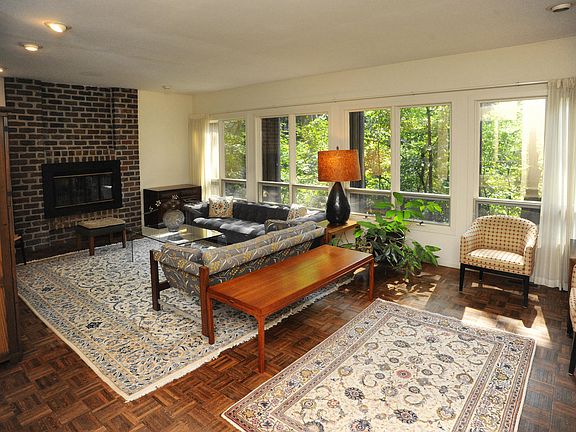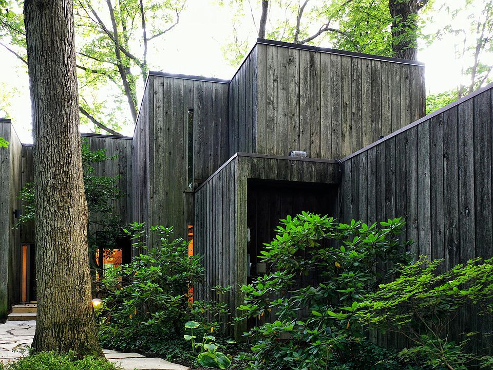 First time on the market! This architect designed contemporary home is nestled on 1.3acre of wooded, tastefully landscaped property. Bordering a ravine the views from most windows are breathtaking. The main floor has a large living area which opens to a screened porch and the formal dining room. The well thought out kitchen was redone in 2017 with new cabinets, quartz countertops and appliances. The library/office has abundant built-ins and has a 3/4 bath just outside should a main floor bedroom be desired. Upstairs find the primary bedroom with builtin book shelves, built in dressers and ample closet space and private balcony. The primary bath has been tastefully updated. Additionally find 3 more bedrooms and a full bath. The walkout basement has a finished recreation room, a large laundry area and an unfinished room waiting for your personal touches. Walk out to the travertine patio and enjoy the beauty that surrounds you.