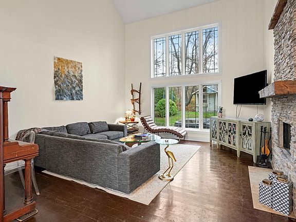 Contemporary custom-built house is truly a sight to behold. With just over 3,000 square feet of space, this home is perfect for those looking for a spacious yet comfortable living area. The home features 4 bedrooms and 3.5 baths, providing ample space for all. A finished basement is the perfect recreational room for hosting gatherings and sleepovers! As you enter the living room, you're greeted by vaulted ceilings and a double-sided wood-burning fireplace that partitions the living room from the kitchen. Making this the heart of the home. Open concept flows throughout the main level, creating an inviting atmosphere. The formal dining room just off the kitchen is perfect for entertaining while avoiding the aftermath of meal preparations. Stained custom finished red oak hardwood flooring throughout with customized kitchen cabinetry, built-in appliances and Travertine kitchen floors helps it all come together creating a modern and functional appearance.