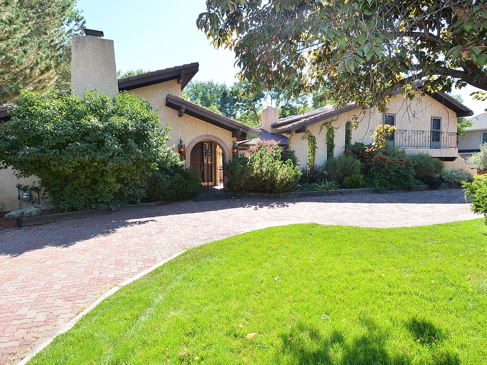 Extravagant home in the Broadmoor area. Skylight in front entry leads to open and inviting floor plan. Kitchen complete with two ovens, walk-in pantry, double dishwasher & microwave. Eat-in kitchen walks out to huge wood deck. Perfect for entertaining. Spacious living room with vaulted ceilings and brick-wood fireplace walks out to private courtyard. Sunken living room with wood floors & fireplace. Lower level family room walks out to large covered concrete patio. Travertine floors. Giant fenced backyard. Master bedroom on upper level with enormous walk-in closet and 3/4 bath walks out to balcony. Second bedroom also with walk-in closet and bay window and breathtaking mountain views. Two additional bedrooms walk out to balconies complete with walk-in closets. Three car garage. Circular brick driveway in front. Fully landscaped front and back with auto sprinkler system. Close to the Broadmoor, downtown shopping, schools, and minutes away from Fort Carson.