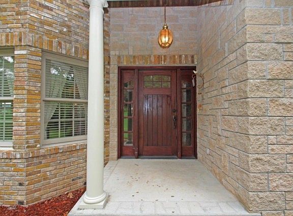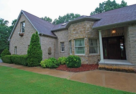 Stunning English-Style Home on 7.95 Wooded Acres! Welcome to 2403 Summerside Dr. 4 bedrooms, 2.5 baths, 4400 square feet. Elegance and luxury await you in this stunning English-style home perched gracefully atop 7.95 private wooded acres with amazing panoramic views of valley below. Approximately 30 acres of community property with 5 Mile Creek frontage, 2 fishing ponds and park area. Beautiful Brick and Asher Stone faced block exterior. Beautifully landscaped front yard, bay window, and covered front entrance welcome you home. Eat-in kitchen features breakfast bar, lots of cabinet and counter space, sunny breakfast nook with bay window and soaring ceiling. Stunning slate gas log fireplace in spacious living area with wood floors and great natural light. Open floor plan with rich detail and decorator features, beautiful columns and designer color in dining area. Home features granite and laminate counters, gas log fireplace, wood burning fireplace, jack and jill baths, jetted tub, walk-in closet(s), security system, skylights. Treetop views abound from the spacious concrete balcony allowing seamless transition between indoor and outdoor living, perfect atmosphere for entertaining guests in wooded privacy. 4 car attached garage, large covered patio with hot tub for the ideal relaxing retreat, concrete balcony, wet bar, family room and safe room in basement, huge rec room and loft at second level. Tons of living space in this amazing home. Great community features include: pond/lake, picnic area, playground/camping area, bike/walking trail. Must see this home!