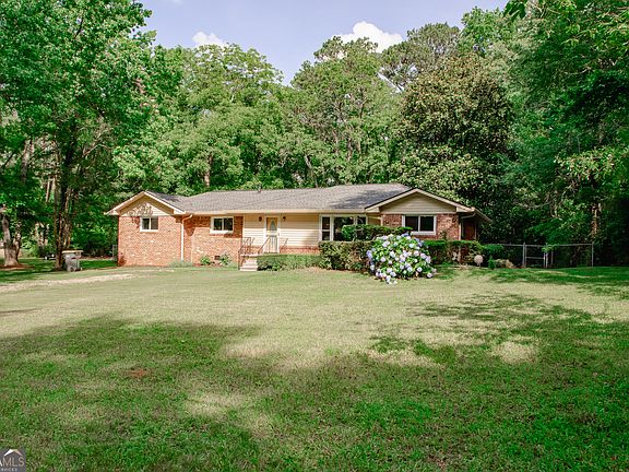RARE RANCH WITH LAND AND A BASEMENT! FULLY UPDATED & MOVE-IN READY. Beautifully updated brick 4BR/2BA ranch on 3+ private acres featuring NEW roof, NEW HVAC, new septic line system, FRESH paint, renovated bath w/ walk-in shower, NEW energy-efficient windows, NEW LVP flooring throughout (no carpet) and a built-in dog door to the fenced yard. Seller just invested $21,000 in a fully stabilized retaining wall w/ drainage, ensuring complete basement waterproofing and easy exterior access. Home offers a primary suite w/ his & her closets, kitchen with newer stainless appliances, breakfast nook, and a separate office. Enjoy a large back deck w/ ramp overlooking the spacious fenced backyard. Rare basement includes W/D hookups, French drain system, and a separate entrance. Exterior features include a 4-car carport, detached 2-car garage w/ workshop, and one acre fully fenced. Conveniently located 10 minutes to downtown Newnan and 9 minutes to I-85. USDA eligible.