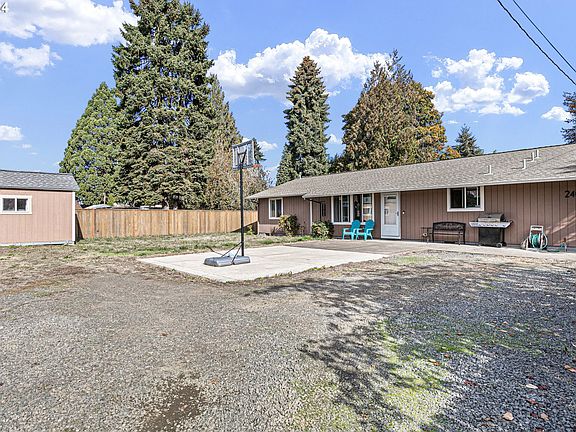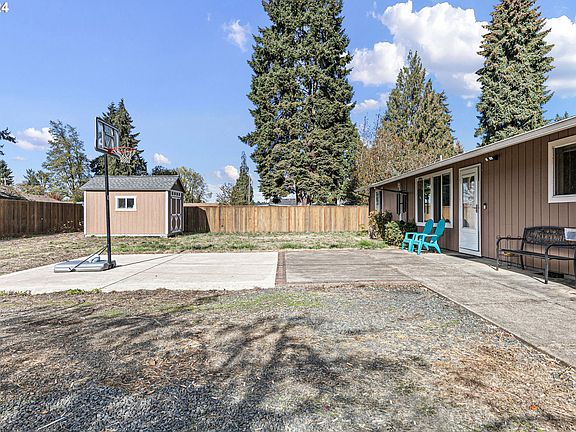 Great opportunity. 1990's built home with 4 beds and 2 baths. This one needs a little cosmetic TLC but could be a great opportunity for the right buyer. Large kitchen area with dining area. Primary bedroom has a full bath. 3 additional bedrooms are all generously sized. Laundry and 2nd bath are across the hall from each other and both well sized rooms. Back yard is fenced but open on each side. Flag lot for privacy. Tool shed is a 10x12 building. Yard is fenced but not completely enclosed.