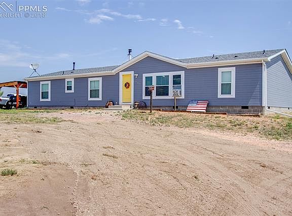 Looking for a quiet place in the country away from the hustle and bustle of the city, you've found it! This property is fully fenced around the perimeter, but also has fencing inside for your pets. Out buildings to include a loafing shed, 2 storage sheds and the cutest chicken-coop you'll ever see. Amazing views of the front range and Pikes Peak. Separate dining room, large kitchen and an office area with built in desk and cabinets. Wood burning stove that will keep the whole house warm in the winter and save on utilities. Roof, siding, skylight and front windows were all replaced 2 years ago. Trampoline and all out buildings included. Please note, the east neighbors well (3ft x 3ft space) is located on this property. The exterior property fencing has been fence around it in order to allow them access as needed. There has never been any issues or concerns.