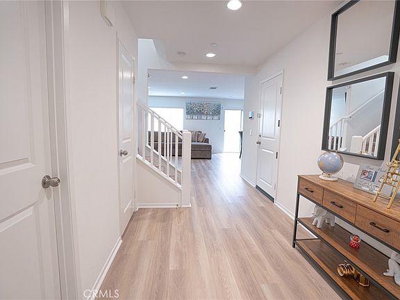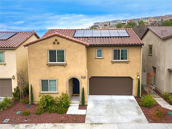 This beautiful home is like NEW! Built in 2022, this home still has some of it's builder warranties and offers the safety of being in the gated community of WESTRIDGE. As you walk in you will notice the home has upgraded flooring all throughout the first floor. There is a spacious bedroom downstairs and a full bathroom for guests. Throughout the home you will find plenty of storage closets, one of which wraps below the staircase to offer even more storage. The living space has an open concept layout with large windows that allow for natural light. The home has recessed lights throughout and upgraded open railing on the first floor. The kitchen offers plenty of cabinets for storage, a spacious kitchen island and like new appliances. The backyard landscaping has been completed and is low maintenance and perfect for grilling in the summer time. As you work your way upstairs you will find a spacious loft that is separated from all of the other bedrooms. The laundry room is conveniently located upstairs and has plenty of storage shelves for organizing. There are 2 secondary bedrooms upstairs that are both spacious and offer lots of natural lighting. The master bedroom is not only large but offers 2 WALK IN CLOSETS. One of the walk in closets is next to the bedroom and the second is off of the primary bathroom. The primary bathroom has an upgraded fiberglass walk in shower, extra space for a vanity, and double sink vanity with storage. The home is equipped with QUIET COOL which is an all house fan which can help save you on your monthly electrical bills! The home has LEASED SOLAR to give you even more savings during the summer. Not only is this home beautiful inside but the location is perfect as well! You are within minutes to the 15 freeway, shopping centers, all schools, and more. The community amenities of CANYON HILLS include pools, several parks, dog parks, a club house, and more. You definitely want to see this home in person. Schedule your appointment to tour this home today!