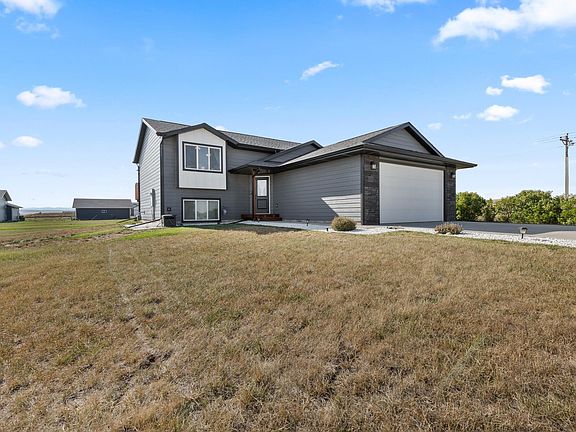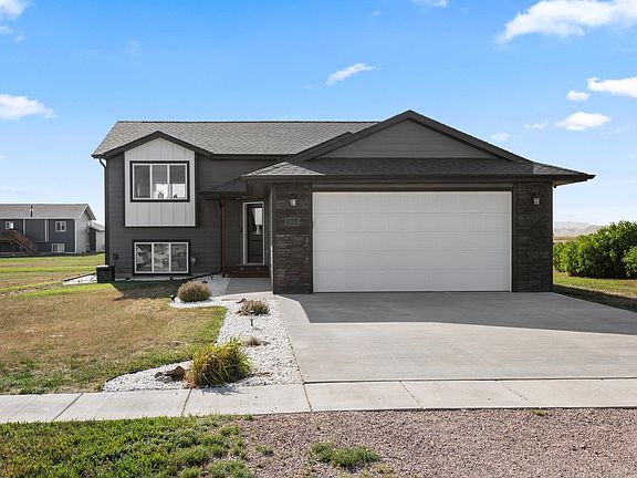 Welcome to this nearly-new home nestled in a quiet, small neighborhood 5 minutes from I-90, 15 minutes from downtown Rapid City and 15 minutes to Ellsworth Air Force Base. Built in 2021 and meticulously maintained, this beautiful residence offers a perfect blend of modern comfort and peaceful living. Set on a generous one-acre lot, this home features 4 bedrooms and 2 bathrooms, designed with both functionality and style in mind. The upper level boasts the primary bedroom with an attached bathroom, additional bedroom and the open dining/kitchen/living area with vaulted ceilings. Downstairs, you'll find another large living area, two bedrooms and a shared hall bath, making this level perfect for guests. There is a deck off the kitchen and a concrete patio below, perfect for outdoor dining, firepit or hot tub. Outbuildings appear to be allowed; covenants are available for review. This home truly combines comfort, style, and room to roam, all within minutes to amenities.