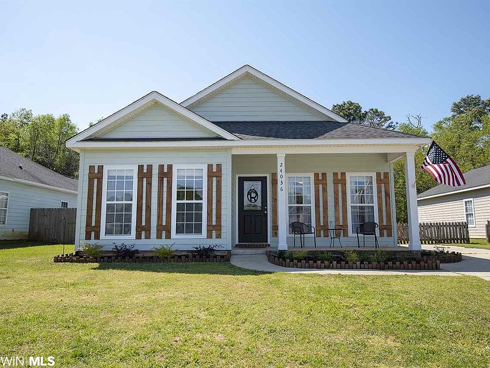 Welcome to Monterey Place. This cozy neighborhood is nestled in a prime location. Only a minutes away from Interstate 10 and the Baldwin Beach Express. This home is just a short drive away from the beautiful baldwin beaches and the big city of Mobile. The welcoming front porch will make you feel right at home every time you drive up. Walking into the front door, you are greeted with beaming natural light and vinyl plank flooring. Flowing to the kitchen this open concept home is ideal for entertaining. The kitchen provides a significant amount of counter space along with a breakfast bar. Moving onto the master bedroom, nothing is more relaxing than coming home from a long day and relaxing in your very own master suite. This spacious retreat with adjoining bathroom comes complete with a double vanity, and walk in closet. Two other bedrooms and one other bathroom provide space for all guests. Enjoy afternoons outside on your covered patio. Don't miss out on the opportunity to make this home yours. In this hot market it won't last long.